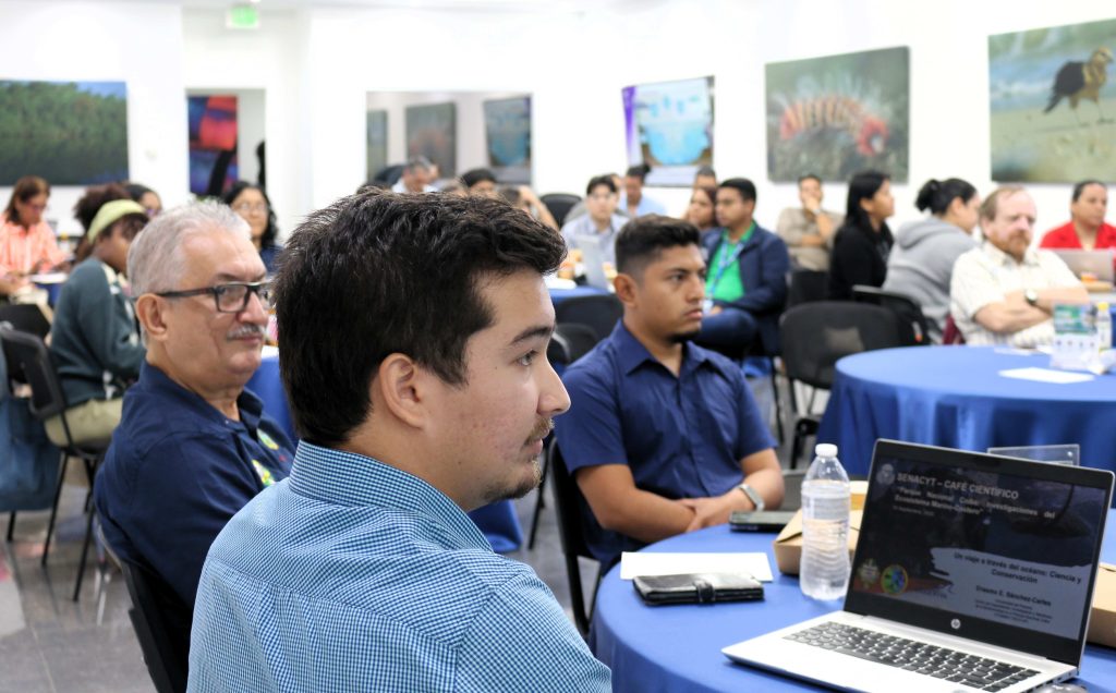 El investigador Erasmo Sánchez, asociado al Centro de Capacitación, Investigación y Monitoreo de la Biodiversidad en el PNC de la Universidad de Panamá (CCIMBIO-CRUV-UP) presentó la conferencia: “Un viaje a través del océano, tecnología y conservación”.